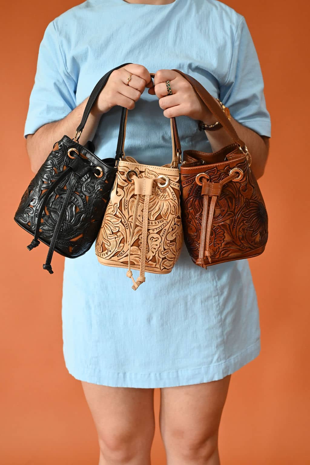 Nestled in the heart of Mexico, in the historic regions of Guanajuato and Jalisco, our leather artisans—masters of the cincelado technique—bring to life the vibrant flores y colores of Mexico. With skills passed down through generations, these craftsmen ensure that every bag not only tells a story but also carries the soul of Mexican artistry.