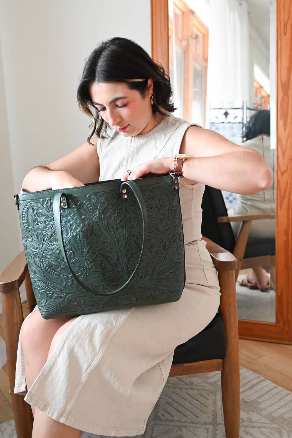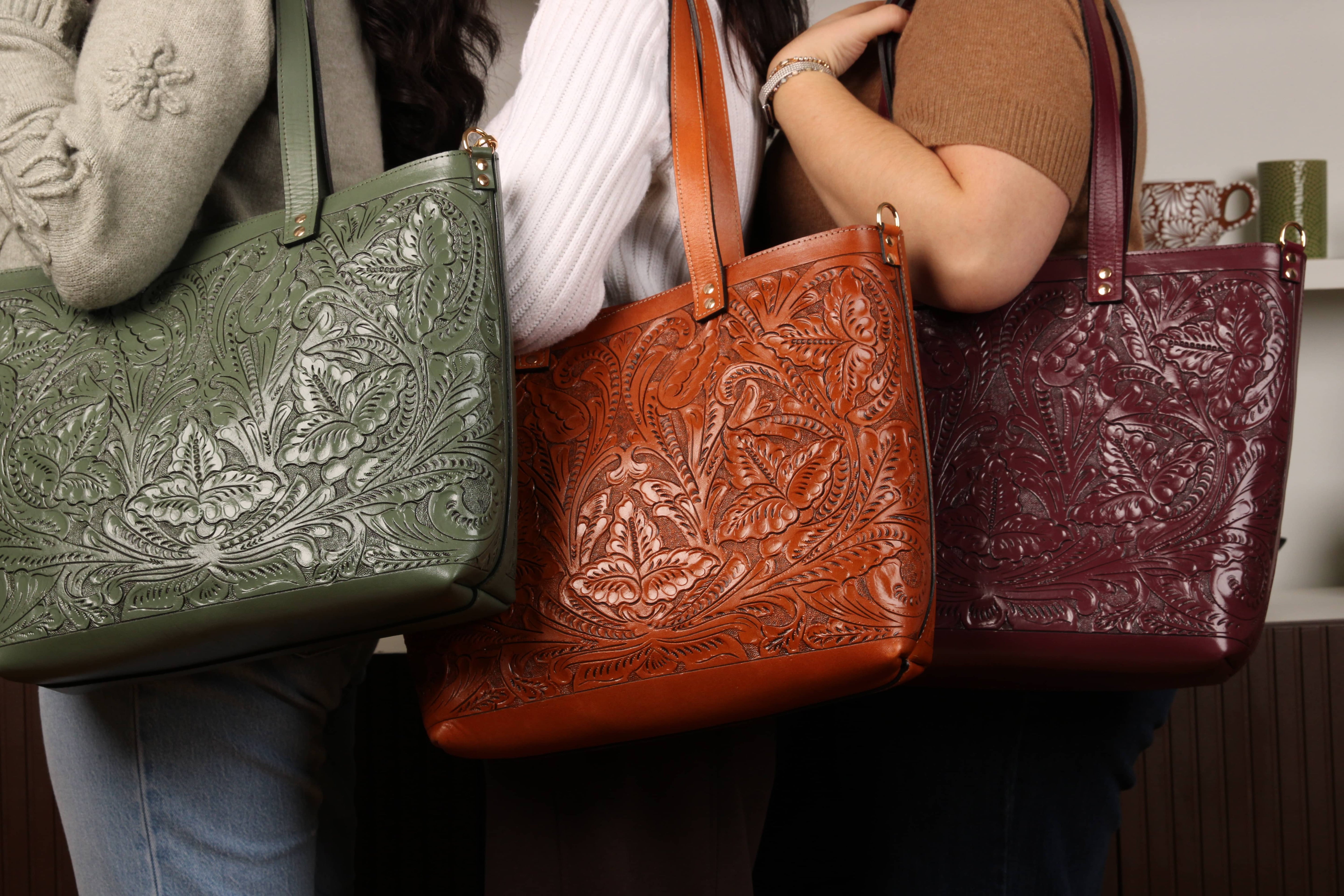 Nestled in the heart of Mexico, in the historic regions of Guanajuato and Jalisco, our leather artisans—masters of the cincelado technique—bring to life the vibrant flores y colores of Mexico. With skills passed down through generations, these craftsmen ensure that every bag not only tells a story but also carries the soul of Mexican artistry.